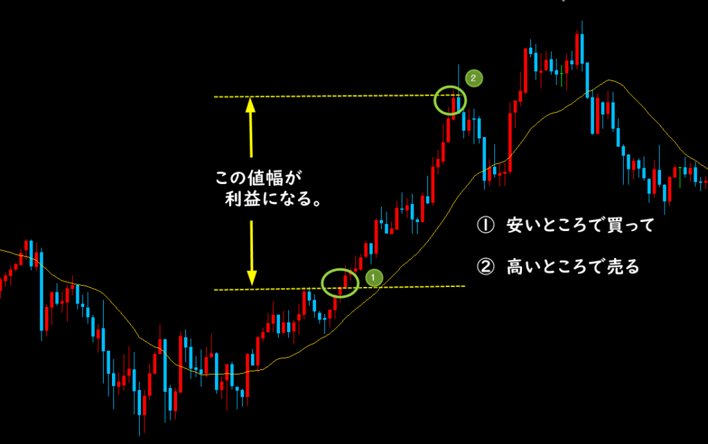 1日の中で、価格の上下があるので、その中で買って→売ってを繰り返していきます。