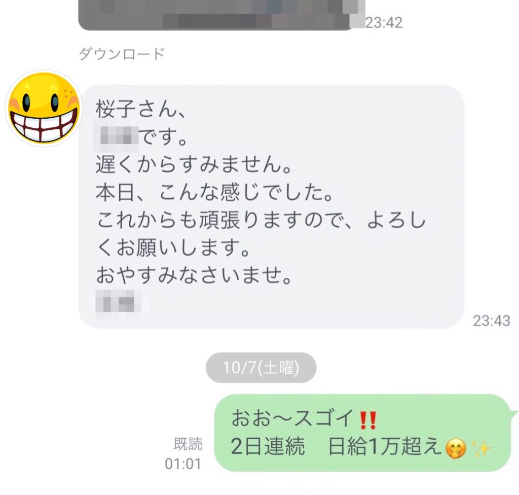 そして2日連続日給1万超え~ の報告もいただき